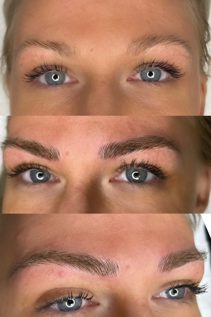 Efterbehandling foretages 4-6 uger efter behandlingen, fordi mellem 10 og 15% af hairstrokes forsvinder efter den første behandling. Der skal påregnes 2-3 efterbehandliger, da det er individuelt hvordan huden modtager pigmentet, og om aftercare overholdes.